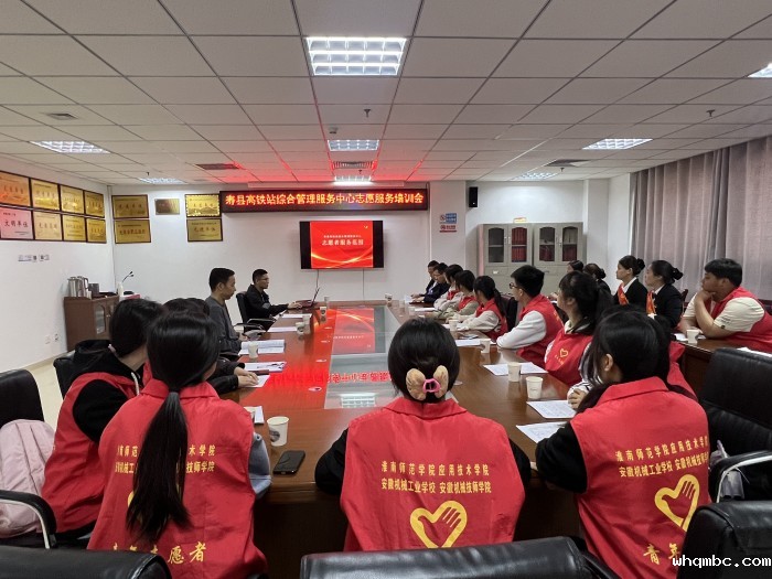 活动前寿县高铁站负责人张璇书记对参与本次志愿活动的志愿者们进行了详细的培训,此次培训使志愿者明确了服务内容和范围。此次志愿服务活动旨在通过为高铁站旅客提供咨询、引导、帮扶等服务,展示学校青年学子的良好形象,培养同学们的志愿服务意识和社会责任感。
