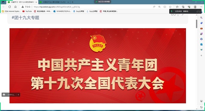 6月22日,中国共产主义青年团第十九次全国代表大会在北京胜利召开。6月28日,智能装备制造系团总支组织召开了线上学习会议,第一时间传达学习习近平总书记同团中央新一届领导班子成员集体谈话时发表的重要讲话精神,以及团十九大报告的主要内容。团总支书记唐建成主持会议,组织委员沈思乾、宣传委员代雪出席会议,系部全体班长、团支书以及学生代表参加会议。