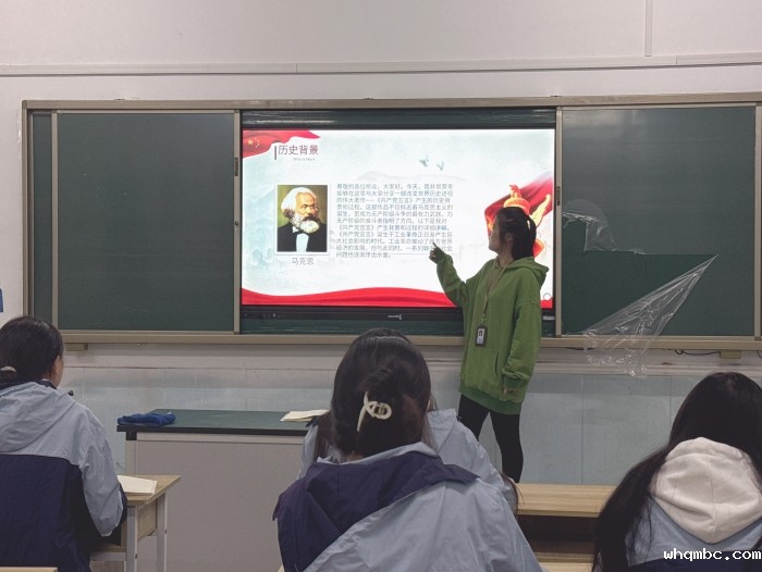 孙老师还分析了《共产党宣言》的广泛影响,指出其不仅对19世纪的无产阶级革命运动产生了深远影响,而且在当今世界仍然具有重要的指导意义。她鼓励学生们重温《共产党宣言》,不忘初心,牢记使命,牢固树立共产主义远大理想,在新时代为实现中华民族伟大复兴而不懈努力。