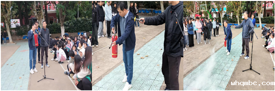 随后,学生处(安全管理科)江旭东老师为师生们讲解了消防安全知识,开展了如何正确使用灭火器灭火的消防技能培训。